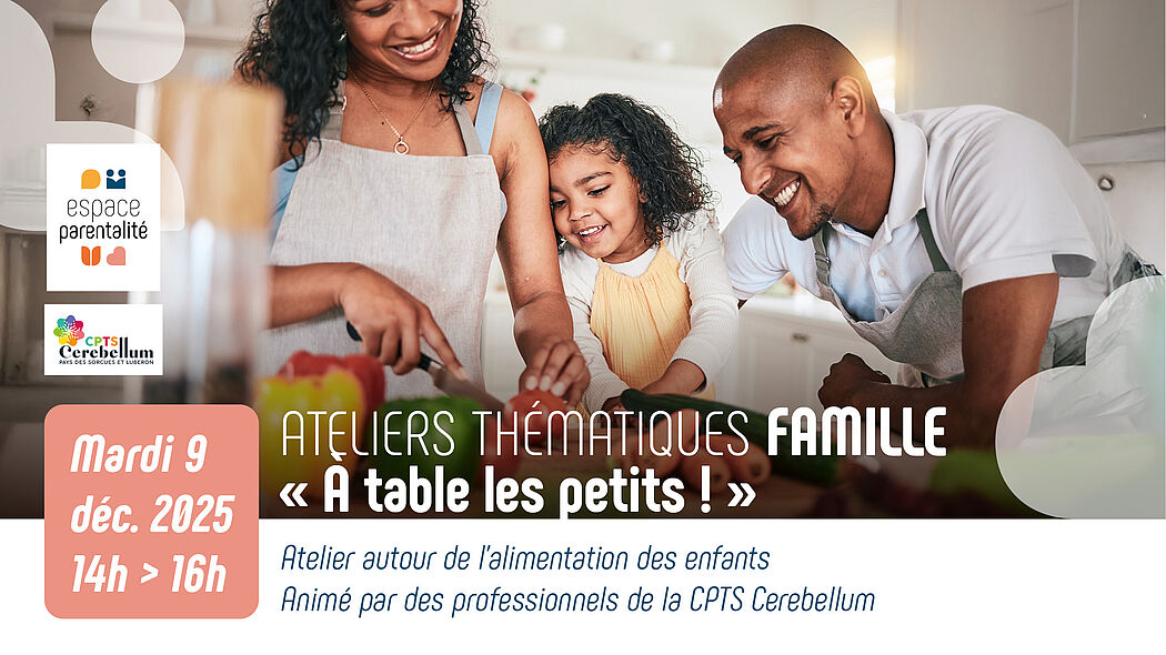 L'espace Parentalité vous propose un atelier autour de l'alimentation des enfants, animé par des professionnels de la CPTS Cerebellum.
