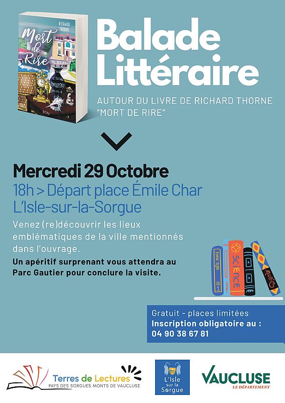 Dans le cadre de “Terre de Lectures” Pays des Sorgues Monts de Vaucluse, venez (re)découvrir les lieux emblématiques de la ville mentionnés dans l’ouvrage !