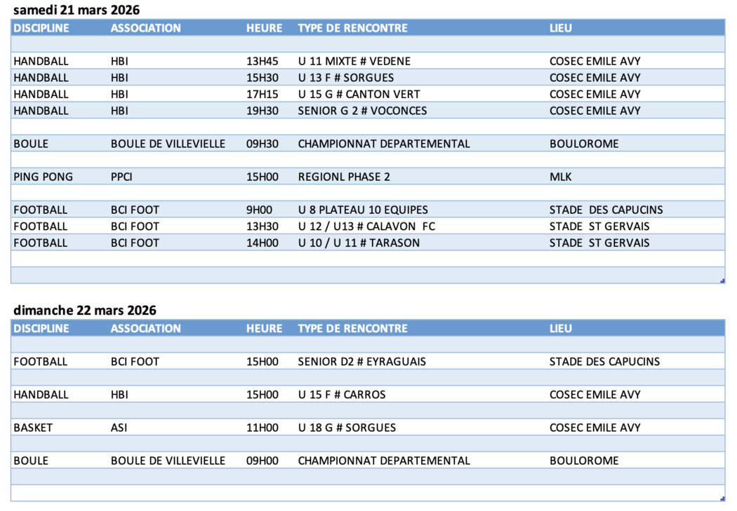 Chaque fin de semaine, découvrez les rencontres sportives l'isloises du week-end à venir.