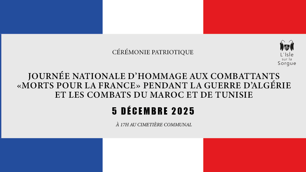 Journée nationale d’hommage aux combattants “morts pour la France” pendant la guerre d'Algérie et les combats du Maroc et de Tunisie (Décret du 26 septembre 2003).