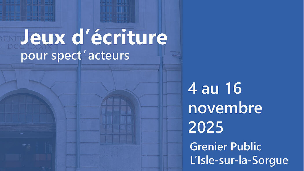 Le Festival de Jeux d’écriture aura lieu du 4 au 16 novembre au Grenier public de L’Isle, ouvert de 10 h à 17 h. Une exposition de photos d’Eva Erdmann et de céramiques de Miline sera visible durant toute la durée de l’événement.