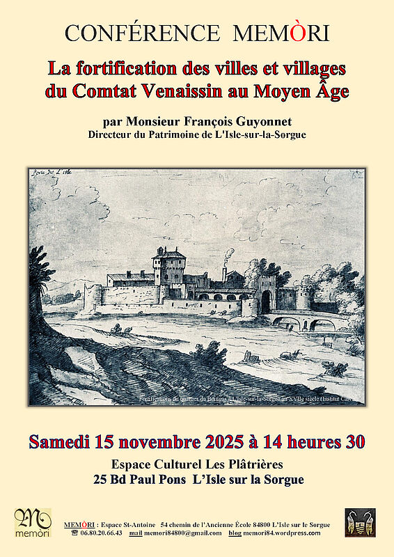 Conférence Memòri “La fortification des villes et villages du Comtat Venaissin au Moyen Âge” par François Guyonnet, Directeur du Patrimoine de L'Isle-sur-la-Sorgue