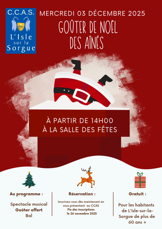 Venir impérativement au CCAS pour s’inscrire avant le 26 Novembre 2025