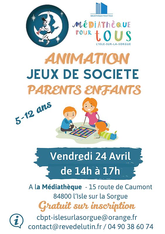 Animation de jeux de société “Parents et enfants âgés de 5 à 12 ans”