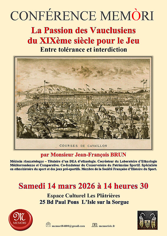 Conférence Memòri “ La passion des vauclusiens du 19° siècle pour le jeu : entre tolérance et interdiction”