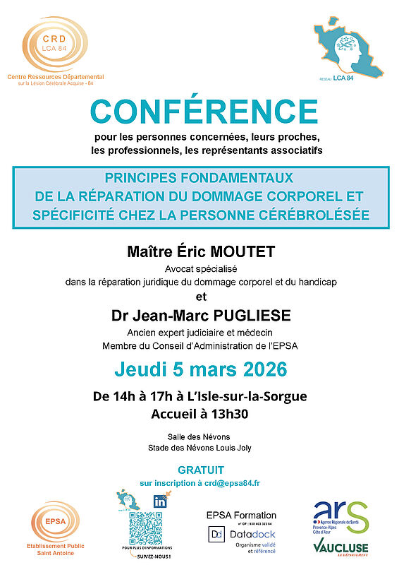 Gratuit inscription obligatoire par email à crd(arobase)epsa84(point)fr.