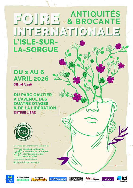 Que vous soyez à la recherche d'une pièce unique pour compléter votre collection, ou simplement curieux de découvrir des objets chargés d'histoire, la foire de l'Isle-sur-la-Sorgue vous promet des découvertes étonnantes et émouvantes. Mobilier ancien, œuvres d'art, bijoux vintage, objets de décoration rares : chaque allée recèle de merveilles à explorer. Les exposants, antiquaires et brocanteurs professionnels, tous adhérents au SNCAO-GA et parrainés par leurs pairs, s’engagent à vendre l’objet pour ce qu’il est. Ils signent la charte du Décret Marcus qui établit les règles déontologiques de la profession et notamment celle de la vente de marchandise authentique. Le label « Antiquité-Qualité » ainsi qu’un service d’expertise gratuit offrira toutes les garanties requises aux acheteurs.
